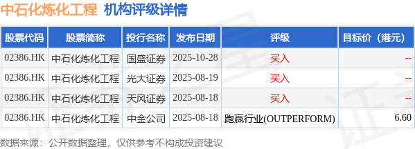 截至2025年11月11日收盘,中石化炼化工程(02386.HK)报收于7.79港元,上涨1.83%,成交量510.31万股,成交额3951.64万港元。投行对该股的评级以买入为主,近90天内共有3家投行给出买入评级,近90天的目标均价为6.6港元。国盛证券最新一份研报给予中石化炼化工程买入评级。