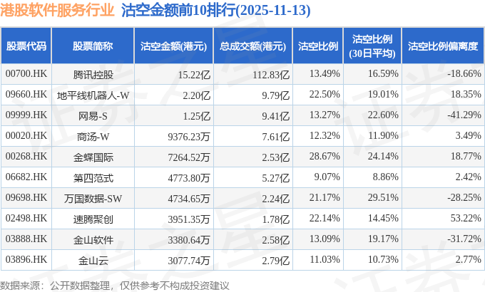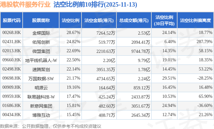 由于港股人民币柜台交易股票成交金额较小,沽空比例普遍偏高,为了避免干扰,已将人民币柜台交易股票从排行表格中剔除。