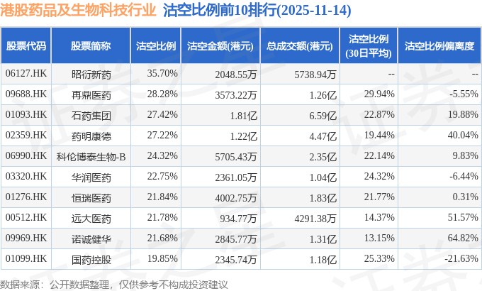 从沽空比例来看,昭衍新药、再鼎医药、石药集团沽空比例位居行业前三,分别为35.7%、28.28%、27.42%。