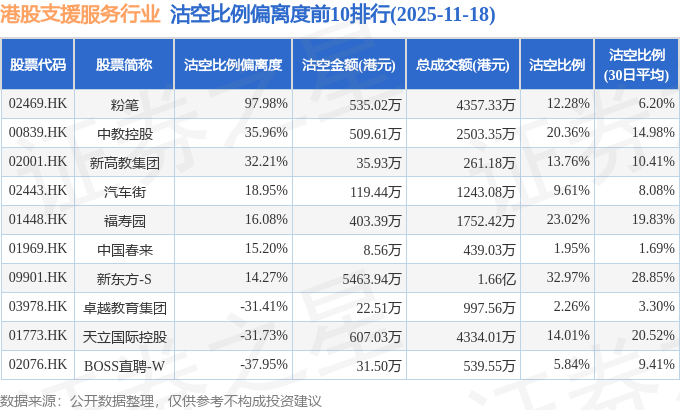 从沽空金额来看,新东方-S、天立国际控股、粉笔沽空金额位居行业前三,分别为5463.94万港元、607.03万港元、535.02万港元。
