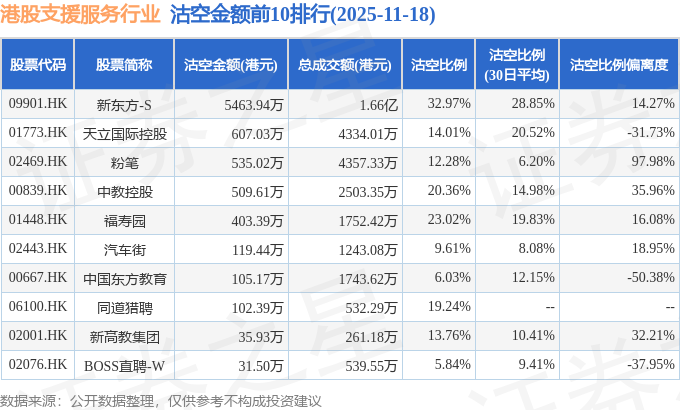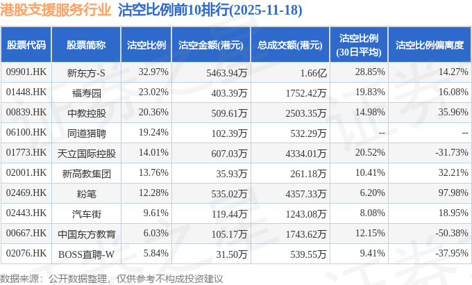 从沽空比例来看,新东方-S、福寿园、中教控股沽空比例位居行业前三,分别为32.97%、23.02%、20.36%。