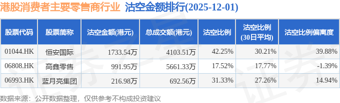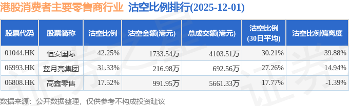 由于港股人民币柜台交易股票成交金额较小,沽空比例普遍偏高,为了避免干扰,已将人民币柜台交易股票从排行表格中剔除。