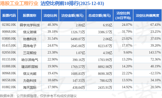 从沽空比例来看,舜宇光学科技、信义玻璃、协鑫科技沽空比例位居行业前三,分别为40.3%、39.18%、31.54%。