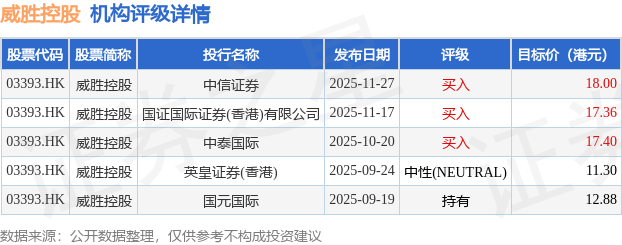 花旗发布研报称,基于AIDC相关新订单强劲及盈利预测更高,将威胜控股(03393.HK)2025至27年的净利润预测调高1%至5%,目标价由15.5港元升至21港元,评级“买入”,认为该股极有可能于明年3月获纳入互联互通机制。花旗早于11月25日对公司开启90天正面催化观察。