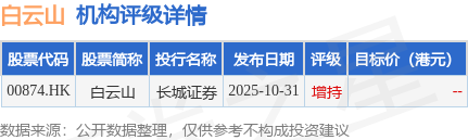 截至2025年12月15日收盘,白云山(00874.HK)报收于18.65港元,与上一交易日持平,成交量50.2万股,成交额933.73万港元。投行对该股的评级以增持为主,近90天内共有1家投行给出增持评级。长城证券最新一份研报给予白云山增持评级。