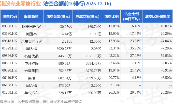 由于港股人民币柜台交易股票成交金额较小,沽空比例普遍偏高,为了避免干扰,已将人民币柜台交易股票从排行表格中剔除。