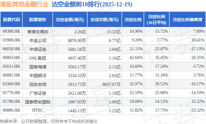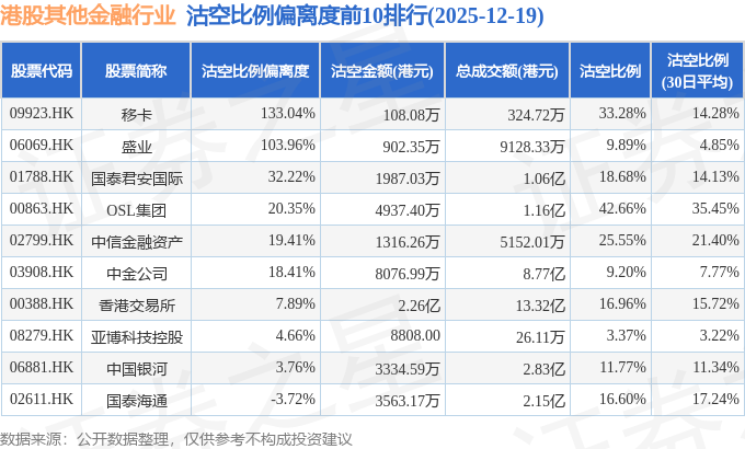 由于港股人民币柜台交易股票成交金额较小,沽空比例普遍偏高,为了避免干扰,已将人民币柜台交易股票从排行表格中剔除。
