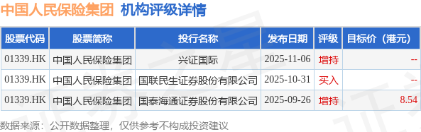 截至2025年12月24日收盘,中国人民保险集团(01339.HK)报收于6.91港元,上涨0.29%,成交量1043.64万股,成交额7181.59万港元。投行对该股的评级以增持为主,近90天内共有2家投行给出增持评级,近90天的目标均价为8.54港元。兴证国际最新一份研报给予中国人民保险集团增持评级。