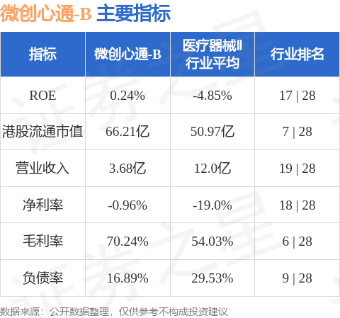 微创心通-B港股市值66.21亿港元,在医疗器械Ⅱ行业中排名第7。主要指标见下表: