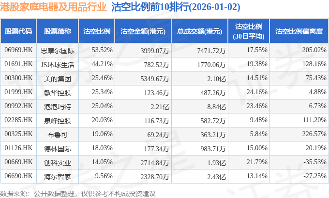 从沽空比例来看,思摩尔国际、JS环球生活、美的集团沽空比例位居行业前三,分别为53.52%、44.21%、25.46%。