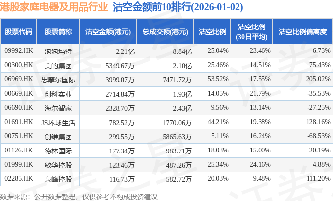 由于港股人民币柜台交易股票成交金额较小,沽空比例普遍偏高,为了避免干扰,已将人民币柜台交易股票从排行表格中剔除。