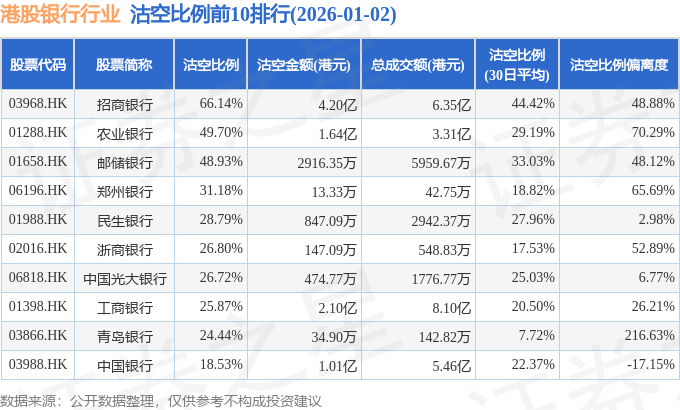 由于港股人民币柜台交易股票成交金额较小,沽空比例普遍偏高,为了避免干扰,已将人民币柜台交易股票从排行表格中剔除。