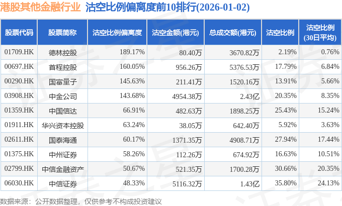 从沽空比例偏离度来看,德林控股、首程控股、国富量子沽空比例偏离度位居行业前三,分别为189.17%、160.05%、145.63%。