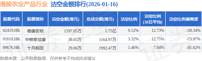 由于港股人民币柜台交易股票成交金额较小,沽空比例普遍偏高,为了避免干扰,已将人民币柜台交易股票从排行表格中剔除。
