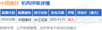 投行对该股的评级以买入为主,近90天内共有1家投行给出买入评级。长江证券最新一份研报给予中国建材买入评级。