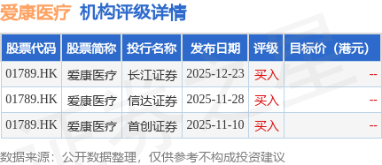 截至2026年2月4日收盘,爱康医疗(01789.HK)报收于6.01港元,上涨0.33%,成交量268.4万股,成交额1599.81万港元。投行对该股的评级以买入为主,近90天内共有3家投行给出买入评级。长江证券最新一份研报给予爱康医疗买入评级。